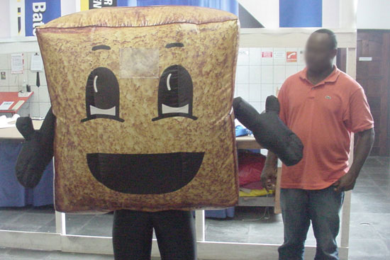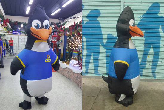 Mais leves do que as tradicionais fantasias de espuma e/ou fibra, as FANTASIAS INFLÁVEIS proporcionam mais conforto ao usuário. São personalizadas, podendo representar o mascote de sua empresa ou réplica de um produto. Variam de 1,80m a 2,10m de altura e são infladas através de uma ventoinha embutida na fantasia, ligada a uma bateria fixada na cintura da pessoa que a estiver vestindo. As FANTASIAS infláveis são uma atração à parte em eventos promocionais e permitem total interação com o público.